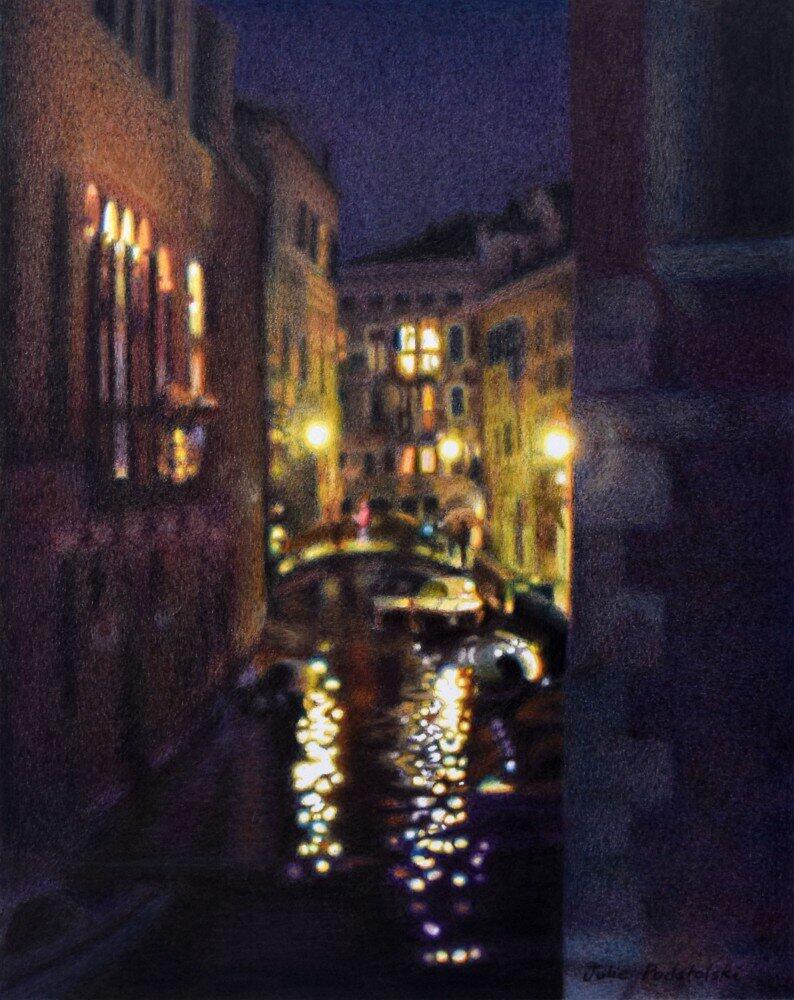 I am contemplating a nocturnal view from a window of our Cannaregio apartment. Drawn in 2019 SOLD