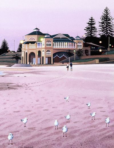Indiana Teahouse and Cottlesloe Beach at dusk with flock of seagulls. year 2001. sold
