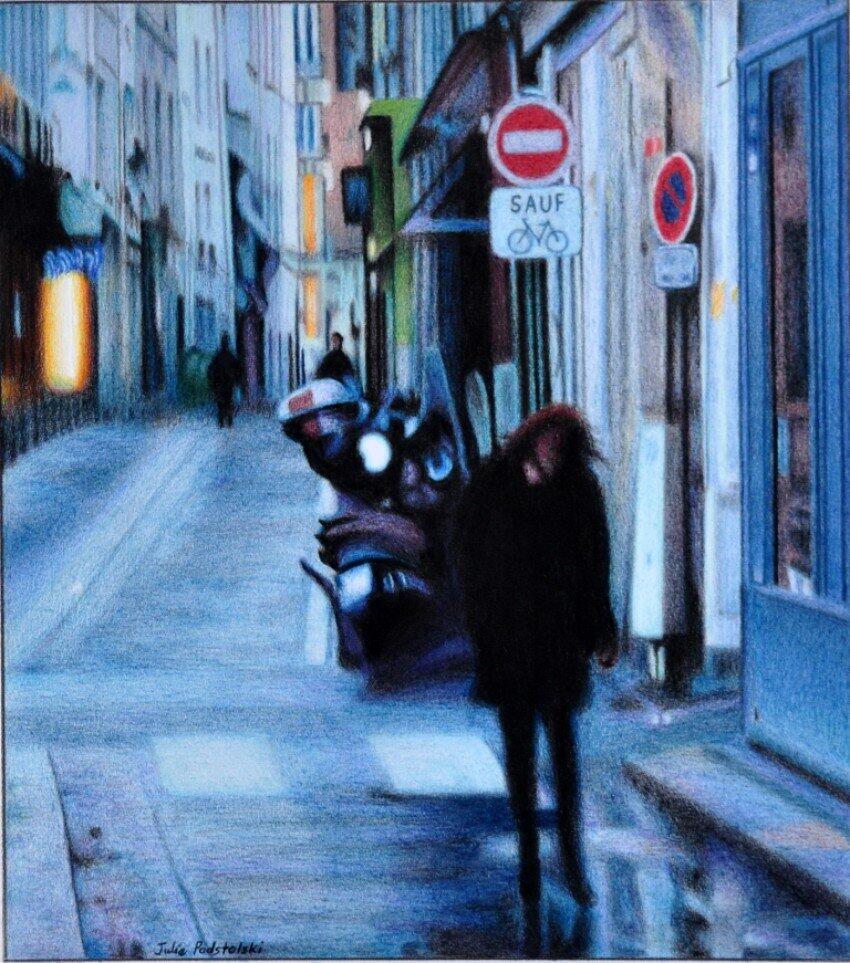 Coloured pencil drawing. Rue de l'Echaudé, Saint Germain des Prés. year 2011. sold