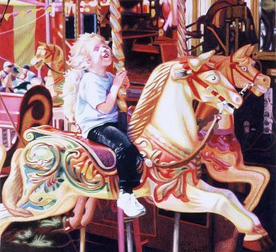 Little girl in state of bliss on merry-go-round at Perth Royal Show. Year 2001. sold