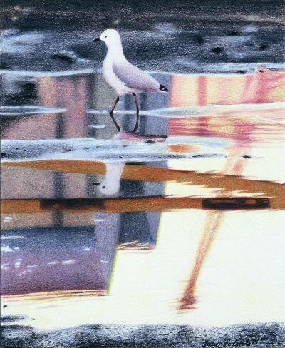 Coloured pencils and Neocolor II soluble pastels on Arches Aquarelle paper