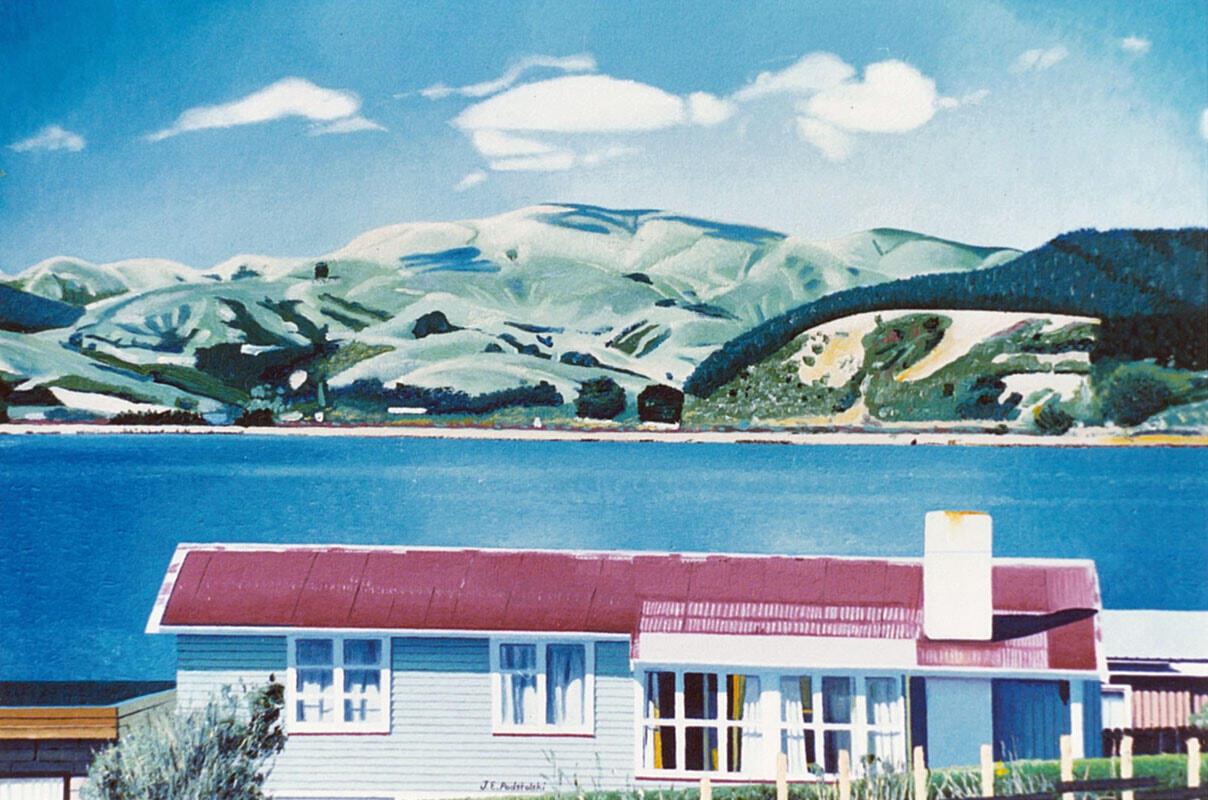 A landscape based on Pauatahanui Inlet north of Wellington. Year 1990. Sold.
