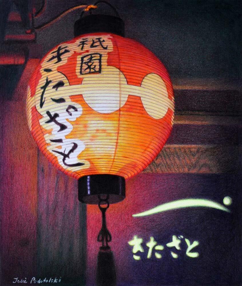 A lantern hangs in Gion. The title refers to the interplay between dark and light within the composition. year 2015. sold