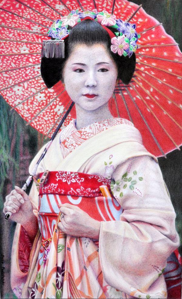 Katsuyuki of Gion Kobu when she was about 17 in 2007. Year drawn 2010. sold