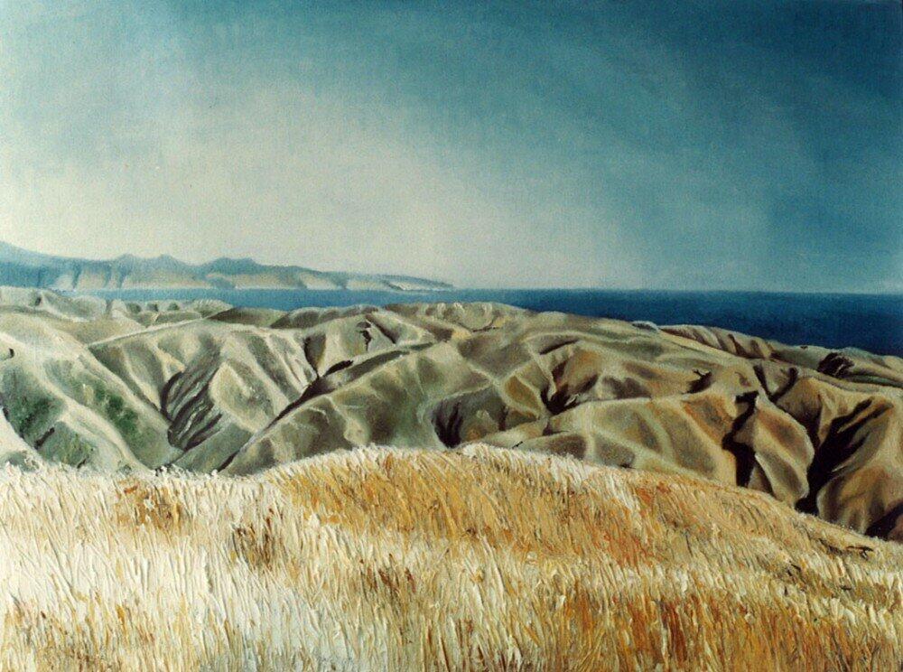 The Makara hills with a view across to the South Island. Year 1986. sold.