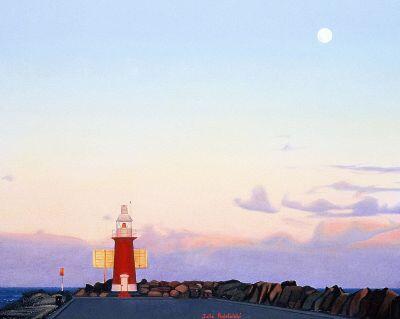 The red lighthouse at Rous Head, Fremantle with full moon at dawn. Year 2001. sold