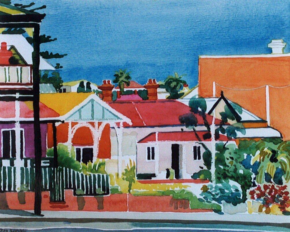 Painted 'en plein air' from the passenger seat of my car, houses on the Canning Hwy, in East Fremantle. Year 1998. sold