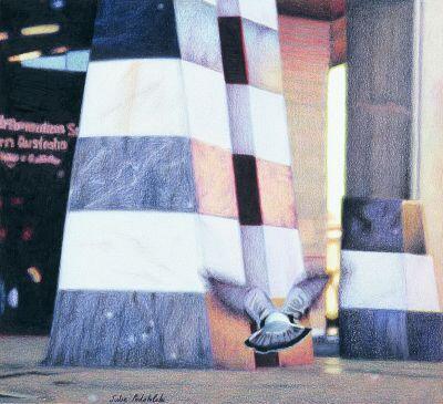 Pigeon taking off outside State Library of Perth. Winner of the Drawing Award at City of Melville Art Awards 2001. Year 2001. sold