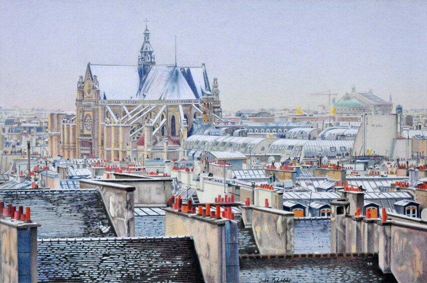 Les Halles and beyond as seen from Centre Georges Pompidou. St-Eustache dominates. To the distant right is Opéra de Paris Garnier. Year 2012. sold
