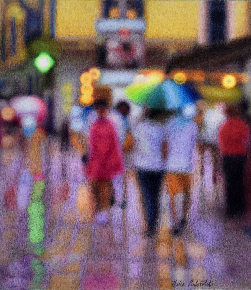 A summer thunderstorm causes colours to run in Verona. Drawn in 2020. SOLD