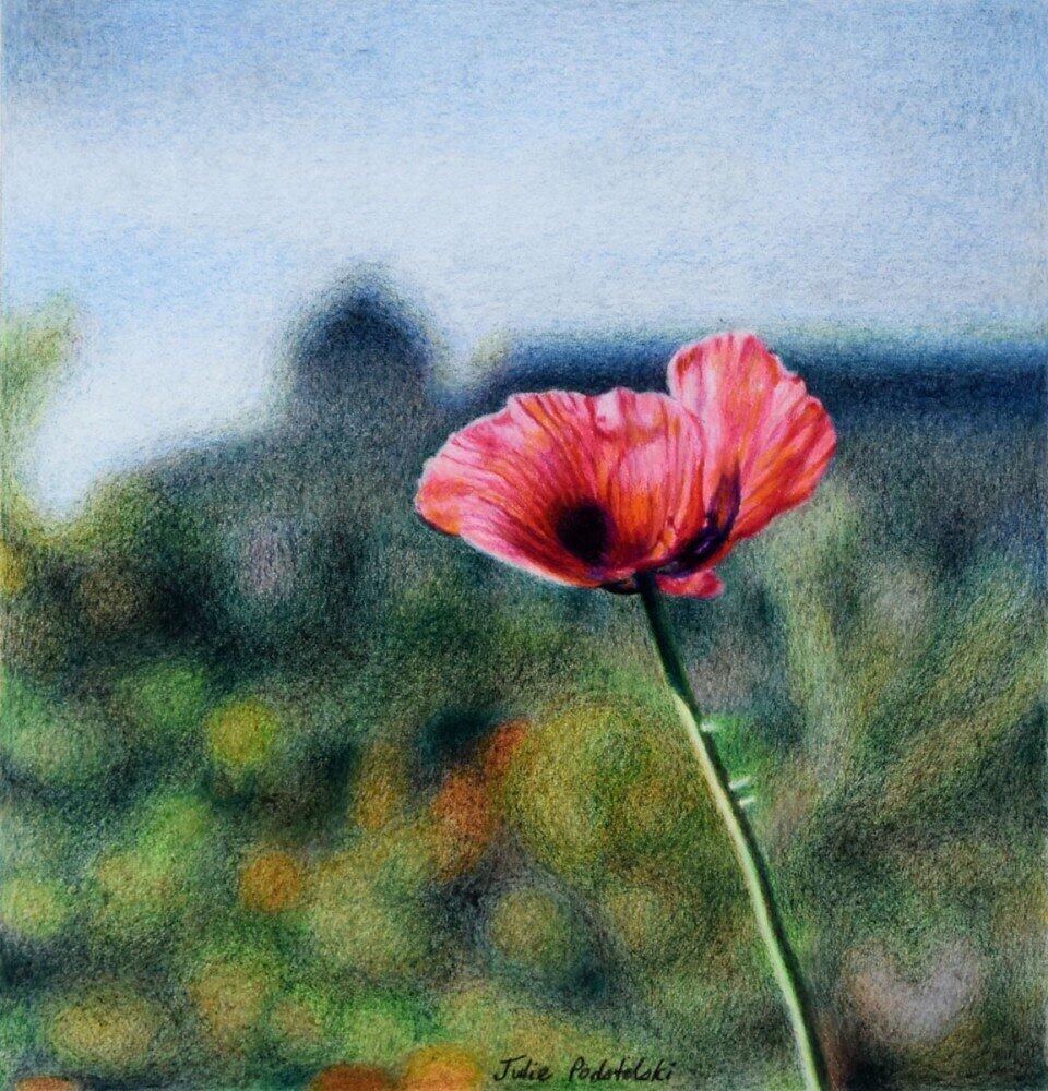 A poppy sways in the breeze at Jardin des Plantes (the botanical gardens of Paris in the 5th arrondissement). Year 2017. sold