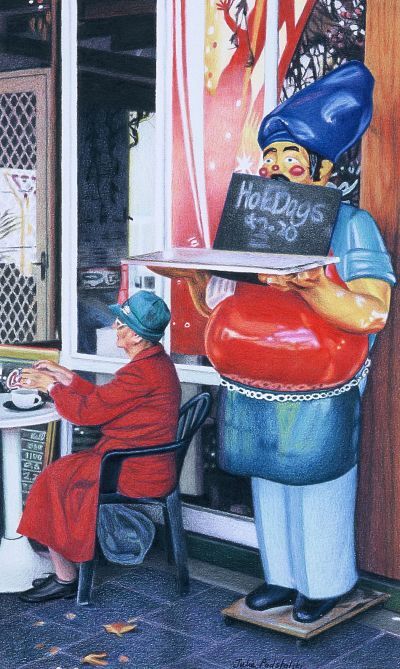 Elderly lady taking tea in Fremantle, Australia. Year 2003. sold