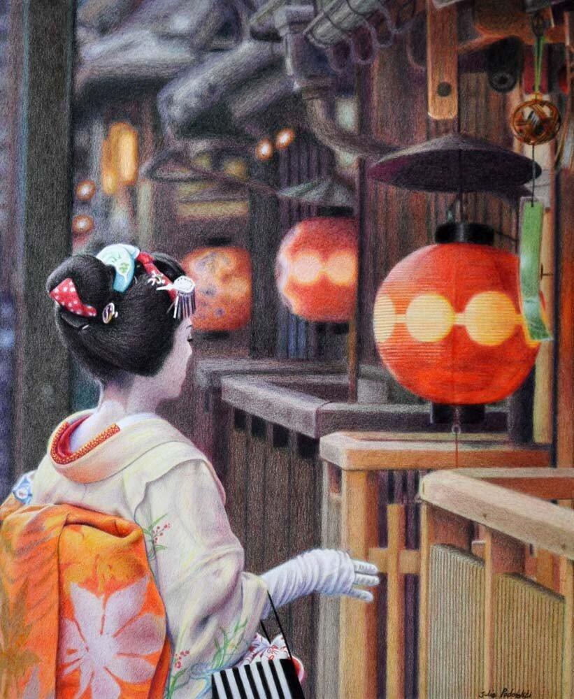 A candid shot of Katsutomo with lanterns becomes the source for my drawing "The Art of Elegance". Year 2014. sold