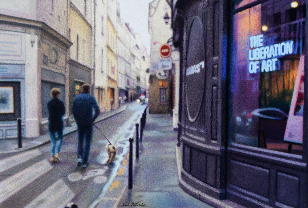 Rue de l'Echaudé is a street of art galleries. A blue neon sign in a gallery window catches my eye. But what exactly IS the liberation of art? Year 2018. sold