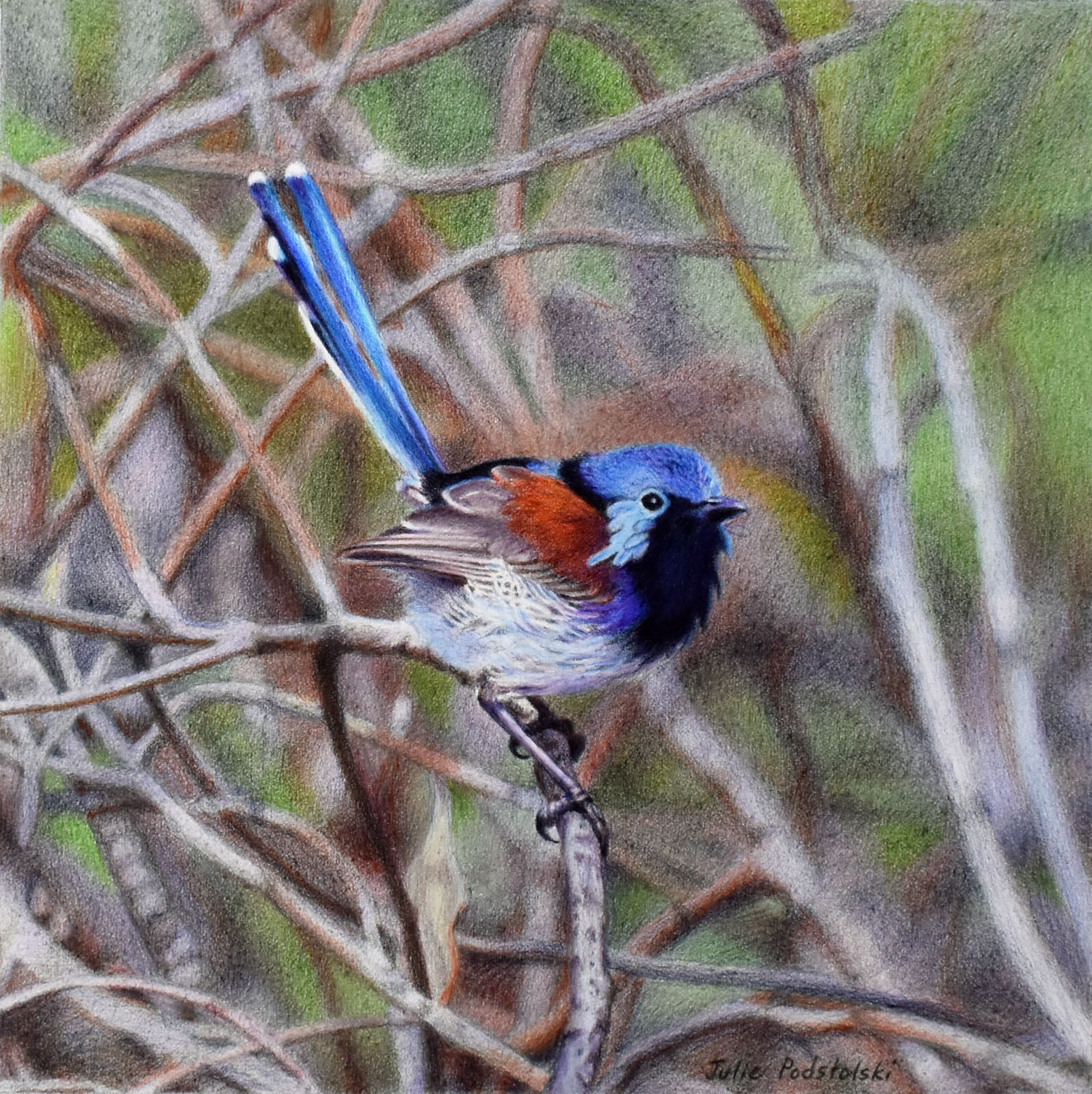 While I love all fairy wrens, I have a particular soft spot for purple-backed fairy wrens. This star is one of the population at Matilda Bay Reserve, a small area of bush tucked behind UWA. Drawn in September 2022. SOLD