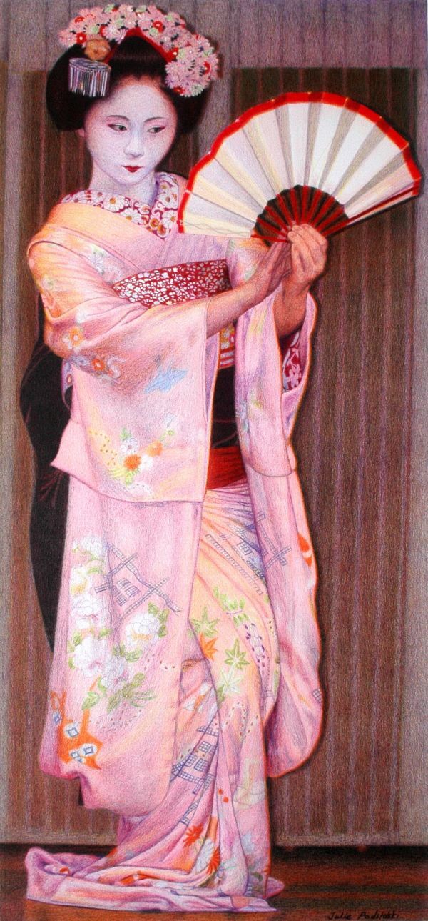 Maiko Kotomi of Gion Higashi during her dance performance on stage. Year 2009. Sold.