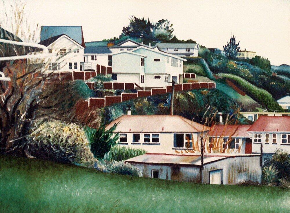 The view of our back garden and beyond at 46 Allington Road, Karori, where I grew up. Year 1983. sold