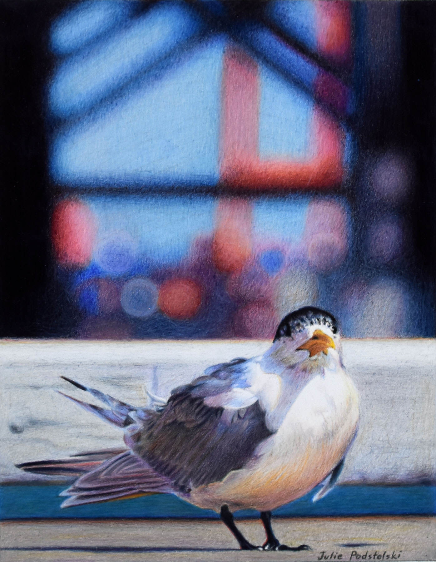 A Crested Tern rests on the ground between fishing trips at Fremantle Port. Drawn in 2021. SOLD